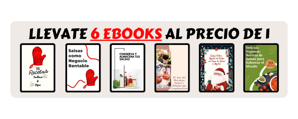 Accede hoy a la Guía Maestra de Salsas y Dips que te ayudará a darle a tu cocina un giro de 180 grados y aprenderás el paso a paso para elaborar + de 200 recetas de alta calidad e iniciar tu propio negocio rentable y con alta demanda.